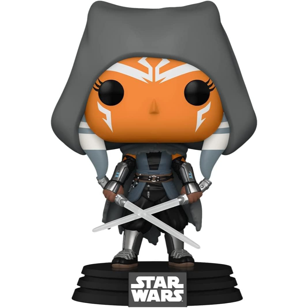 Celebrate one of the galaxy’s most beloved warriors with this dynamic Funko Pop! of Ahsoka from The Mandalorian. Cloaked in her hooded attire and wielding her iconic dual white lightsabers, she stands ready for confrontation with calm determination. Her detailed facial markings, flowing montrals, and poised stance capture the strength and grace of this fan-favorite character.