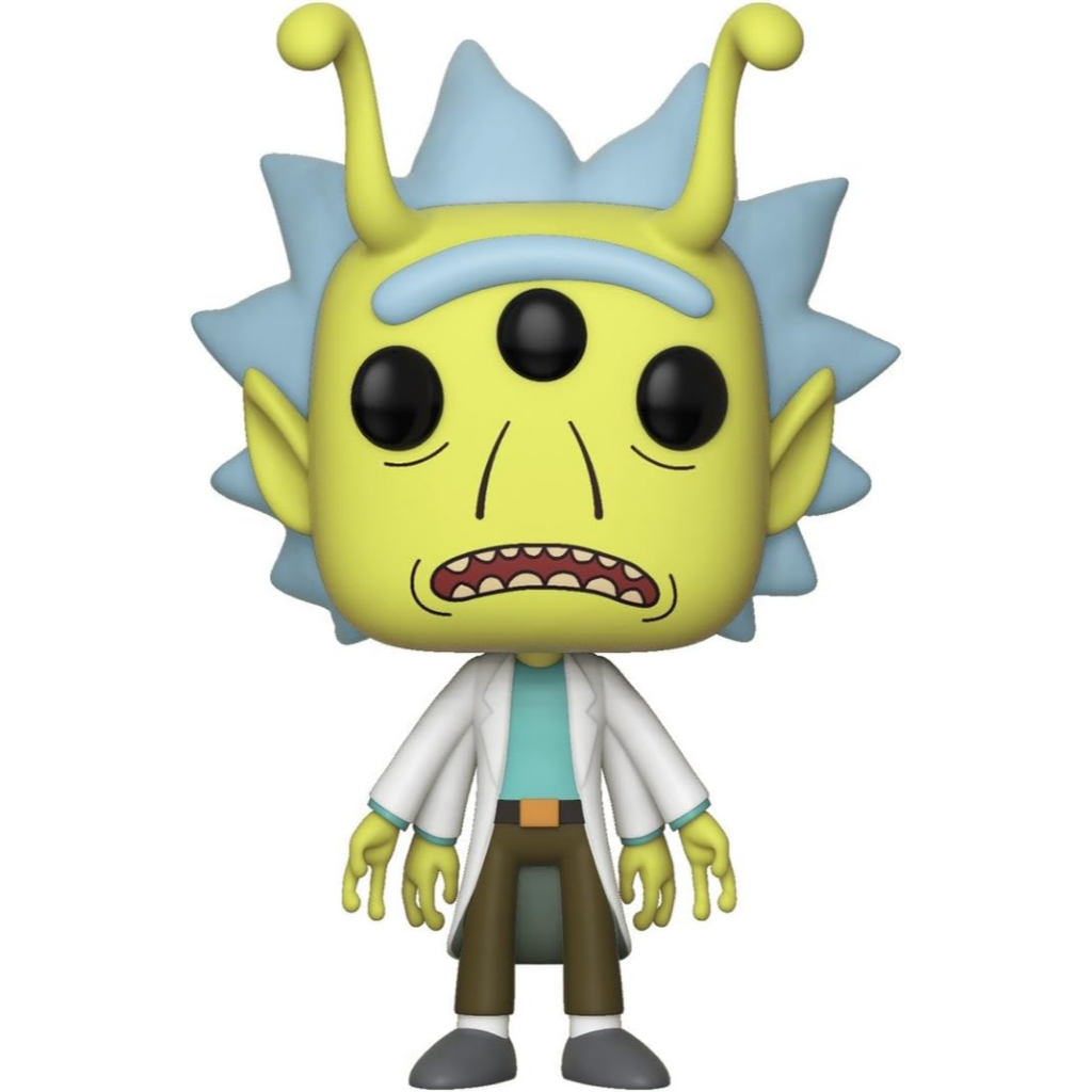 Warp your collection into stranger territory with Alien Rick from Rick & Morty. Featuring a vivid alien complexion, extra eye, and antennae, this variant pushes Rick’s already bizarre persona even further. The familiar lab coat and uneasy expression ground the design while highlighting the show’s love for chaotic transformations.