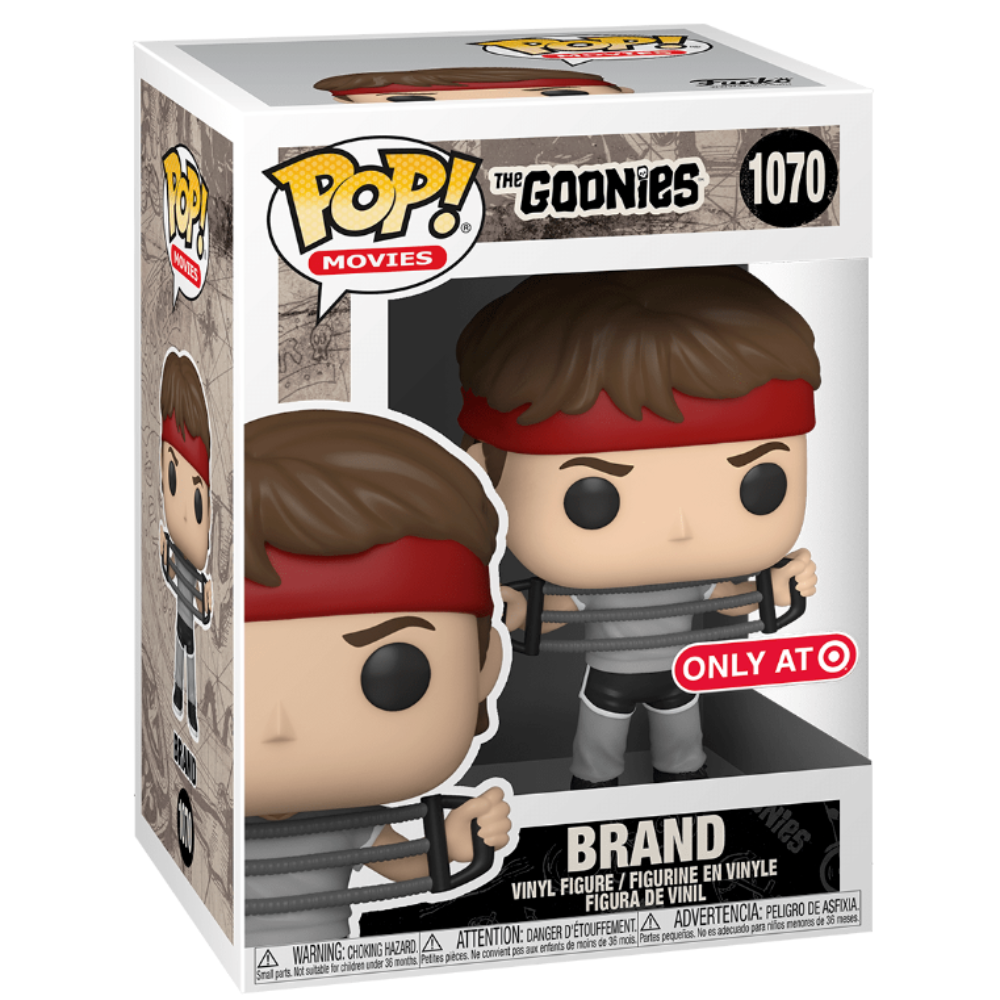 This Funko Pop! captures Brand from The Goonies in one of his most memorable moments—armed with his workout resistance bands and ready to charge into action. With his headband, focused expression, and classic athletic gear, this figure brings 80s adventure energy right to your display.