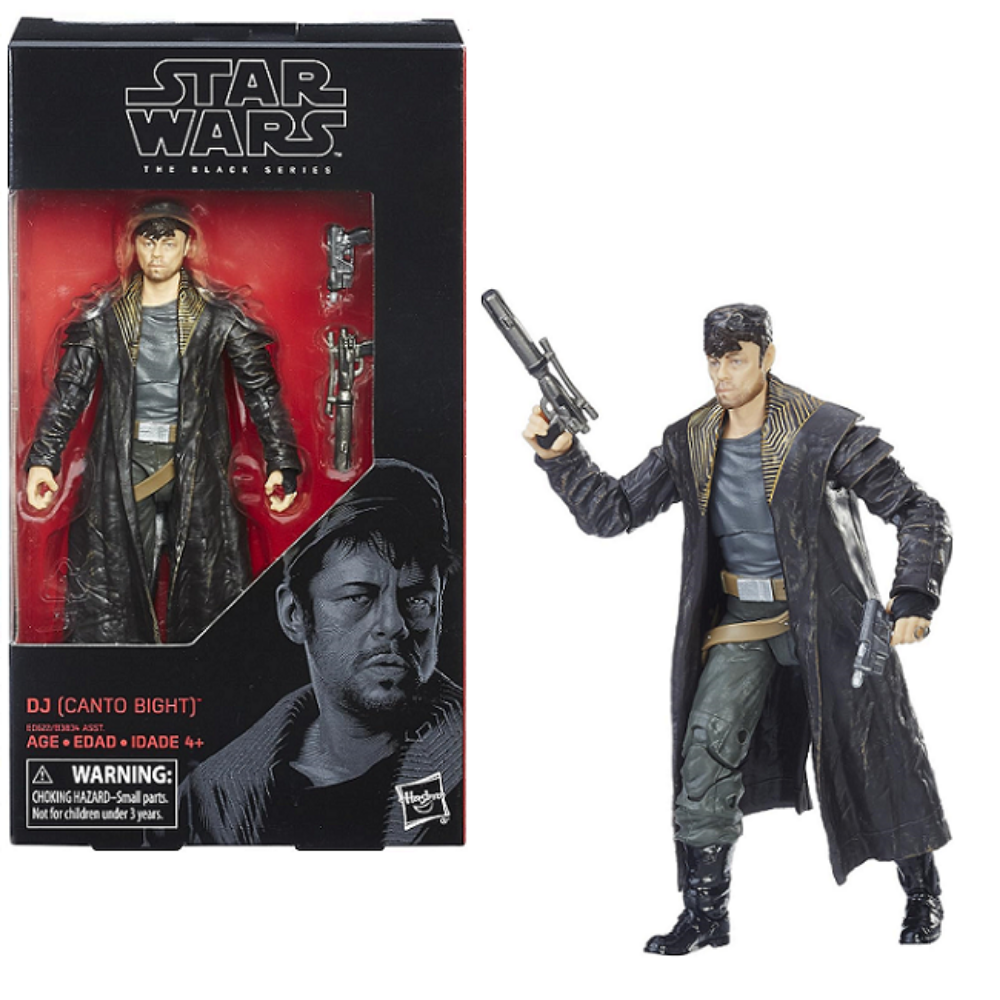 Featured in The Last Jedi, this DJ (Canto Bight) Black Series figure represents the galaxy’s morally gray survivors. A slicer with quick instincts and flexible loyalties, DJ navigates the casino city’s shadows where trust is optional and survival comes first.