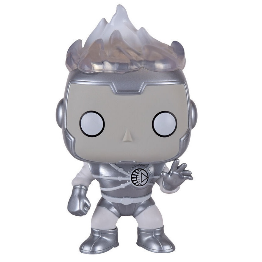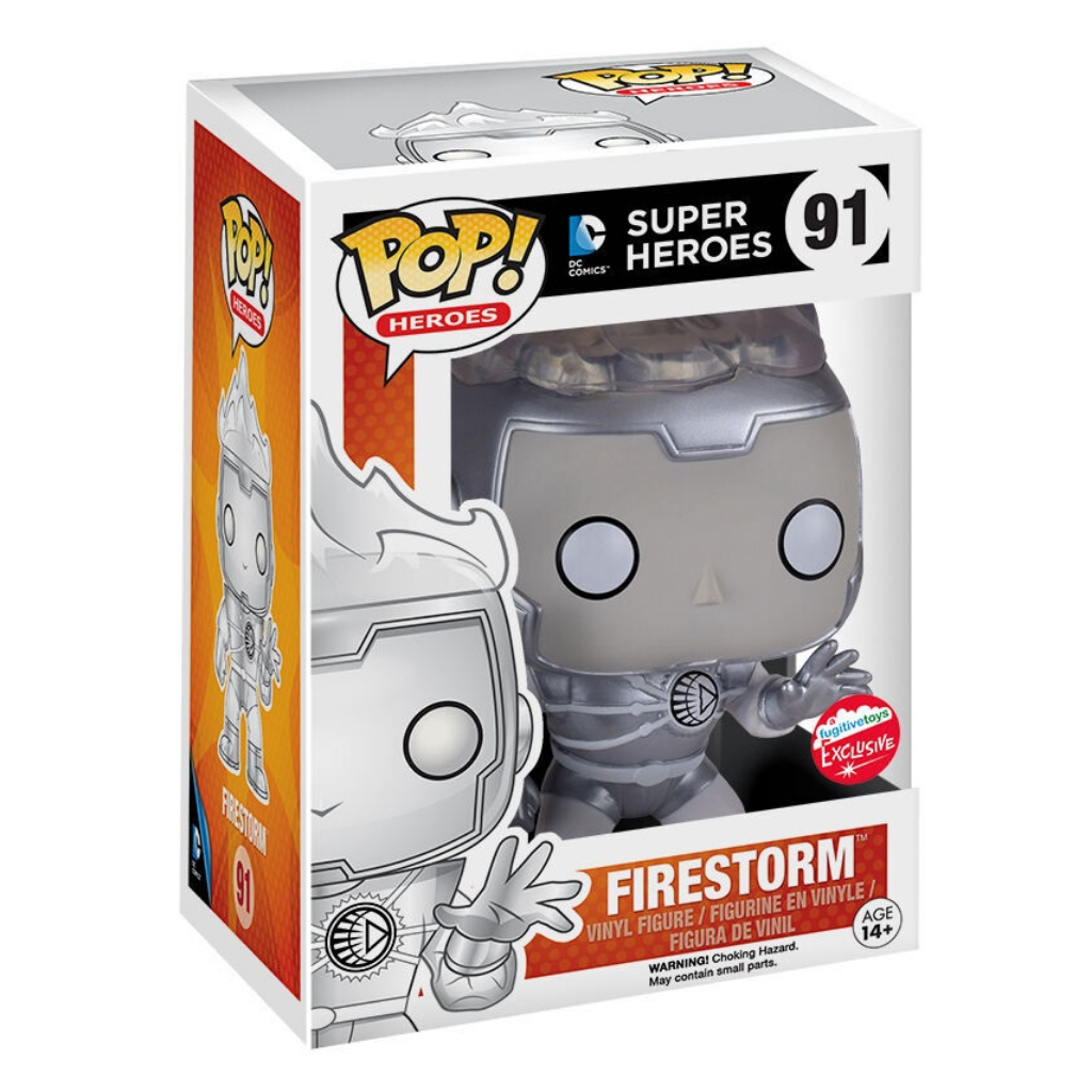 This figure is the Fugitive Toys Exclusive version, making it a sought-after collectible for DC fans and Funko Pop! collectors alike. With its striking silver finish and dynamic design, Firestorm stands out as a bold addition to any superhero display.