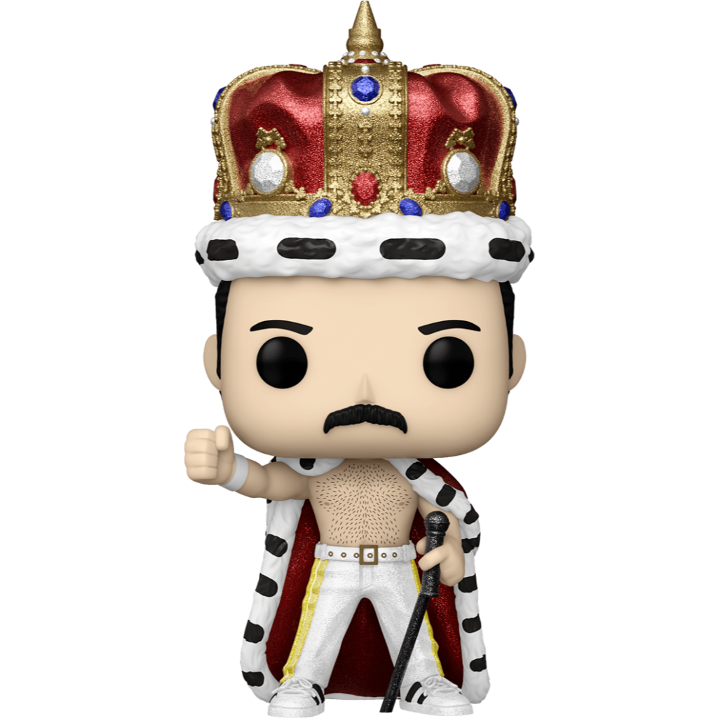 This Diamond Funko Exclusive features Freddie in his iconic crown, royal cape, and microphone stand pose, elevated with sparkling details that make this version truly command attention.