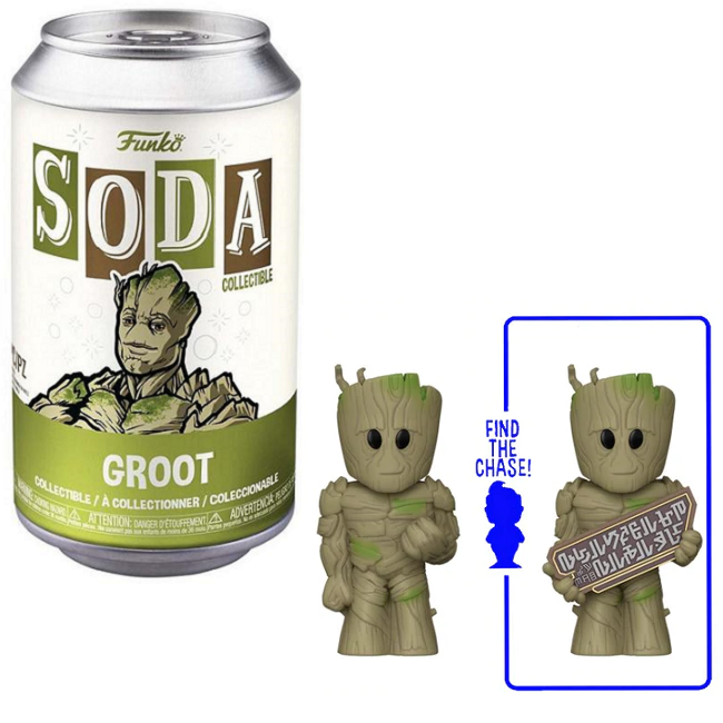 Bring the heart of the Guardians team to your collection with this Groot Funko SODA from Guardians of the Galaxy Vol. 3. Each sealed soda can comes with a detailed vinyl figure and collectible disc, plus the exciting chance of uncovering a rare Chase variant.