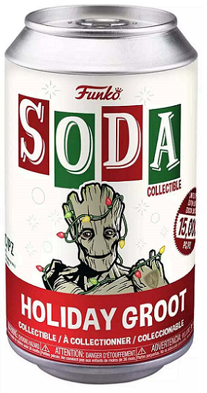 Celebrate the season with this Holiday Groot Funko SODA from The Guardians of the Galaxy Holiday Special. Each sealed soda can includes a vinyl figure and collectible disc, with some lucky cans hiding the rare Chase variant to make your holidays even brighter.