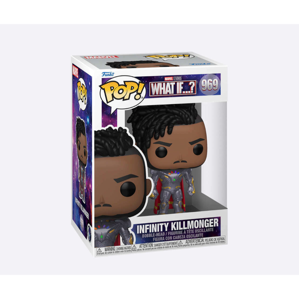This commanding Infinity Killmonger Funko Pop! captures his striking appearance from Marvel’s What If…?. Clad in upgraded armor infused with Infinity Stones and wearing a regal red cape, this figure reflects the immense power and ambition of this multiverse-shaping Variant.