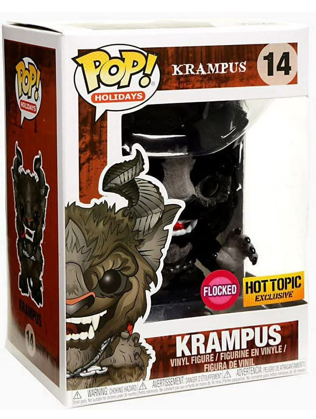 Embrace the eerie side of the season with Krampus #14 from the Funko Pop! Holidays line. This Flocked Black Hot Topic Exclusive features the terrifying holiday beast in a soft, textured finish—complete with his menacing horns, red tongue, and chained child-snatcher style that has haunted legends for centuries.