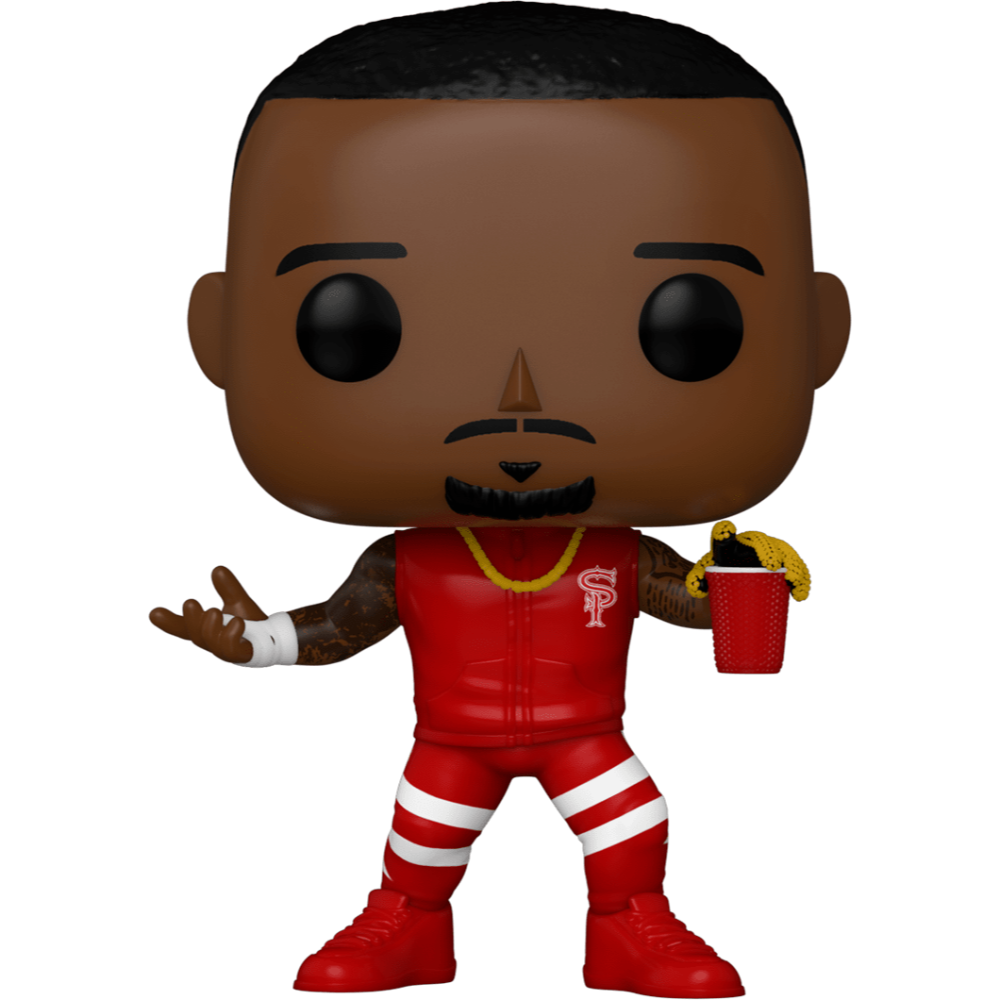 Capture the electric presence of Montez Ford with this dynamic WWE Funko Pop. Styled in bold red Street Profits gear and holding his signature red cup, this figure perfectly reflects his energetic persona and show-stealing confidence inside the ring.