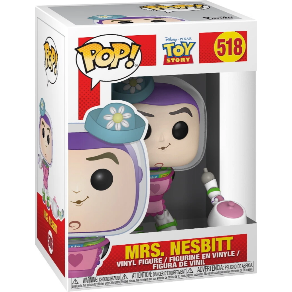Relive one of Toy Story’s funniest moments with Mrs. Nesbitt, Buzz Lightyear’s unforgettable alter ego from Disney Pixar’s Toy Story, captured as a Funko Pop! This playful figure features Buzz dressed for high-society tea time, complete with apron, teacup, and wide-eyed confidence.