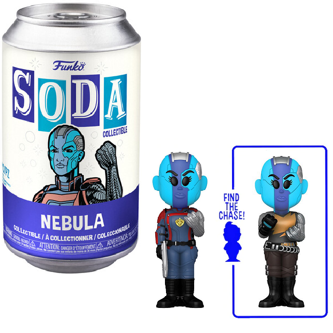 Bring the fierce and determined Nebula from Guardians of the Galaxy Vol. 3 into your collection with this Funko SODA release. Each sealed soda can includes a detailed vinyl figure and collectible disc, plus the exciting chance of finding a rare Chase variant.