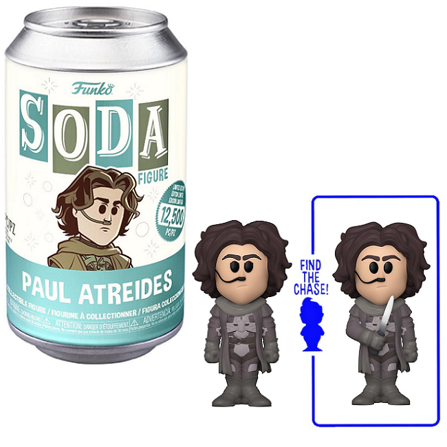 Step into the world of Arrakis with this Paul Atreides Funko SODA. Each sealed soda can contains a detailed vinyl figure and collectible disc, along with the exciting possibility of uncovering a rare Chase variant inside.