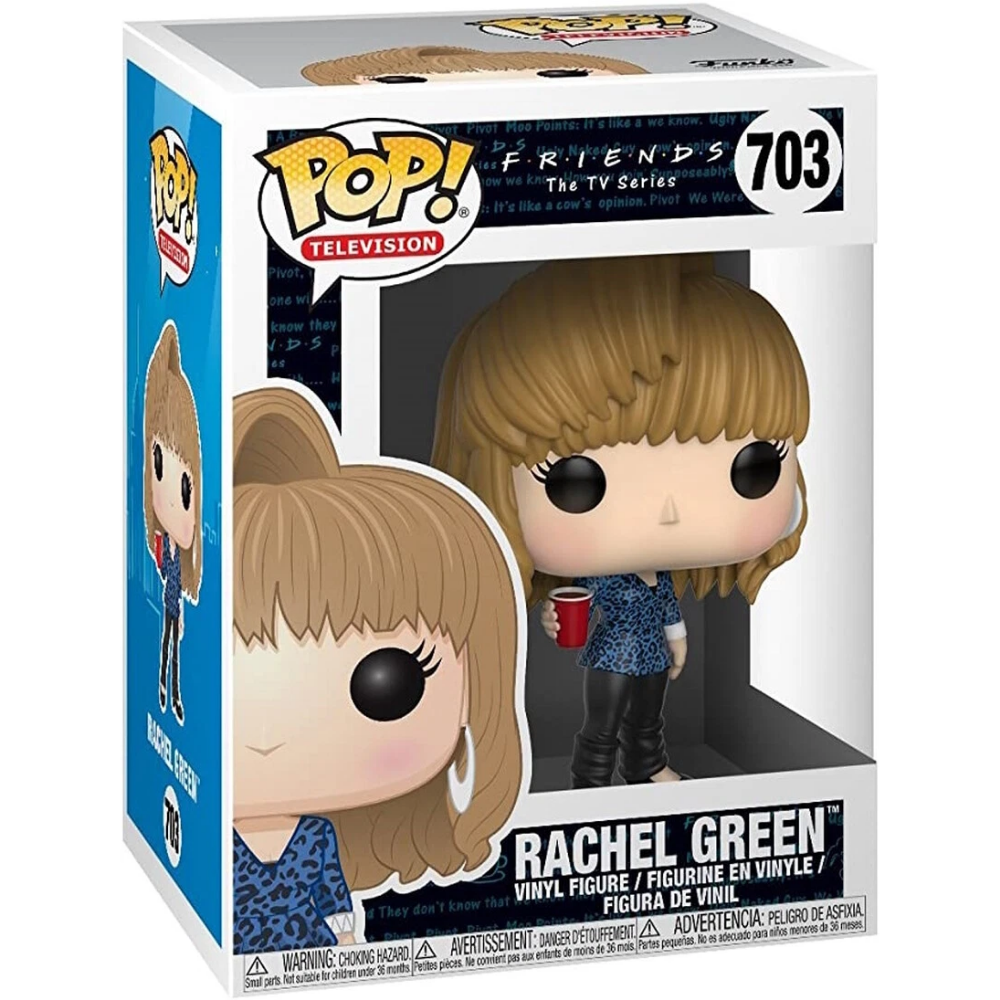 Celebrate one of television’s most iconic characters with Rachel Green 80’s #703 from Friends. This Funko Pop! captures Rachel’s early-era look, complete with her signature hairstyle, bold outfit, and coffee cup in hand. It’s a nostalgic throwback to Rachel’s journey before she became the fashion icon fans know and love.