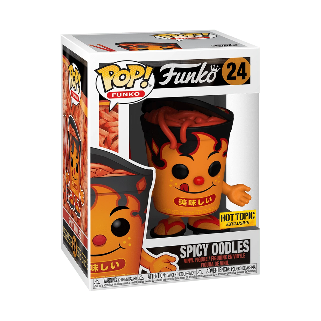 Spicy Oodles stands out with its fiery design and fun food-inspired character concept. The Hot Topic Exclusive release makes it an appealing piece for collectors of unique Pop mascots and Funko originals.