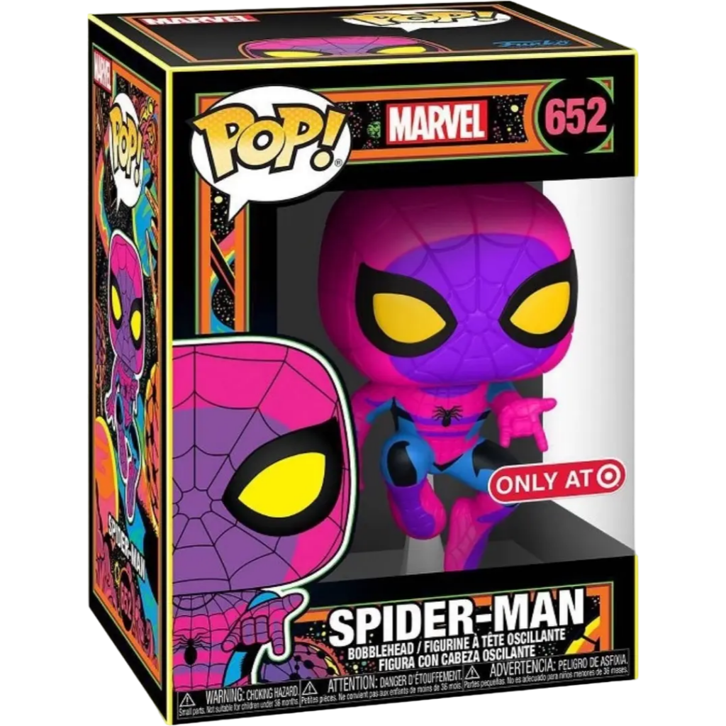 Blacklight Spider-Man Pops are among the most visually striking Marvel releases. This Target Exclusive re-release offers collectors a second chance to add a high-impact, display-focused version of Spider-Man to their collection.
