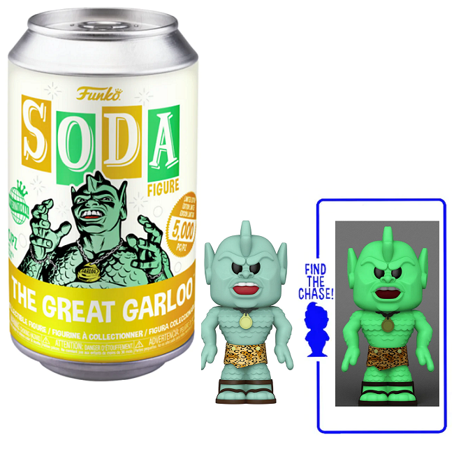 Step back into vintage television history with The Great Garloo Funko SODA. This international can edition includes a vinyl figure and collectible disc, with the added chance of finding the rare Chase variant to enhance your collection.