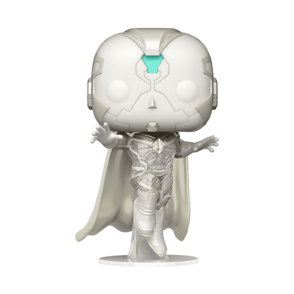 Bring a pivotal moment from WandaVision into your display with this striking Funko Pop! of The Vision in his white reactivated form. With metallic detailing, a flowing cape, and a poised mid-air stance, this figure captures his mysterious and commanding presence from the series.